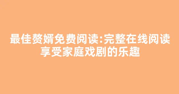 无论是剧情、角色还是情感,《最佳赘婿》都能满足读者的期待。通过在线免费阅读,你可以随时随地享受这部家庭剧带来的乐趣。