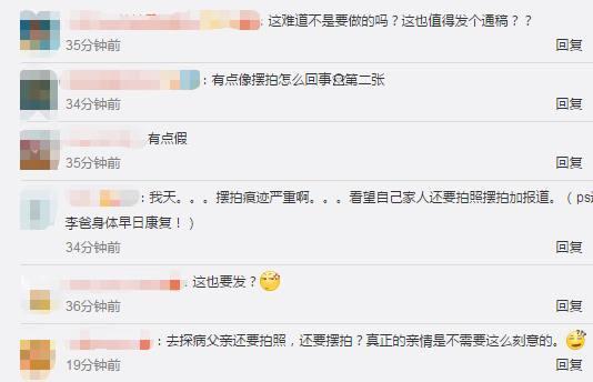不过,此举却遭到了网友们的质疑,认为照片摆拍痕迹太重,而且照顾生病的父母本来就是为人子女应该做的事,真正的亲情不需要如此的刻意。