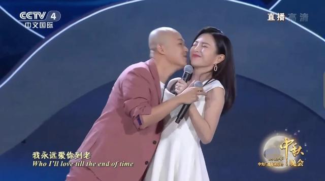 包贝尔包文婧夫妇央视中秋晚会携手带来歌曲《小酒窝》,人家夫妻那是除了唱歌,还现场“虐狗”,包贝尔主动亲了包文婧!